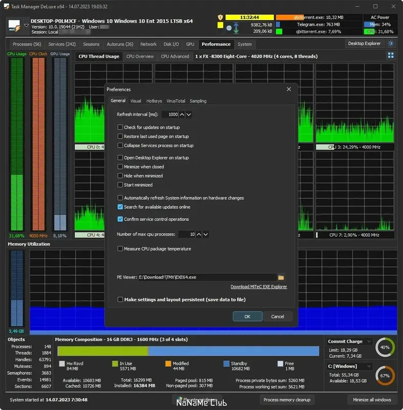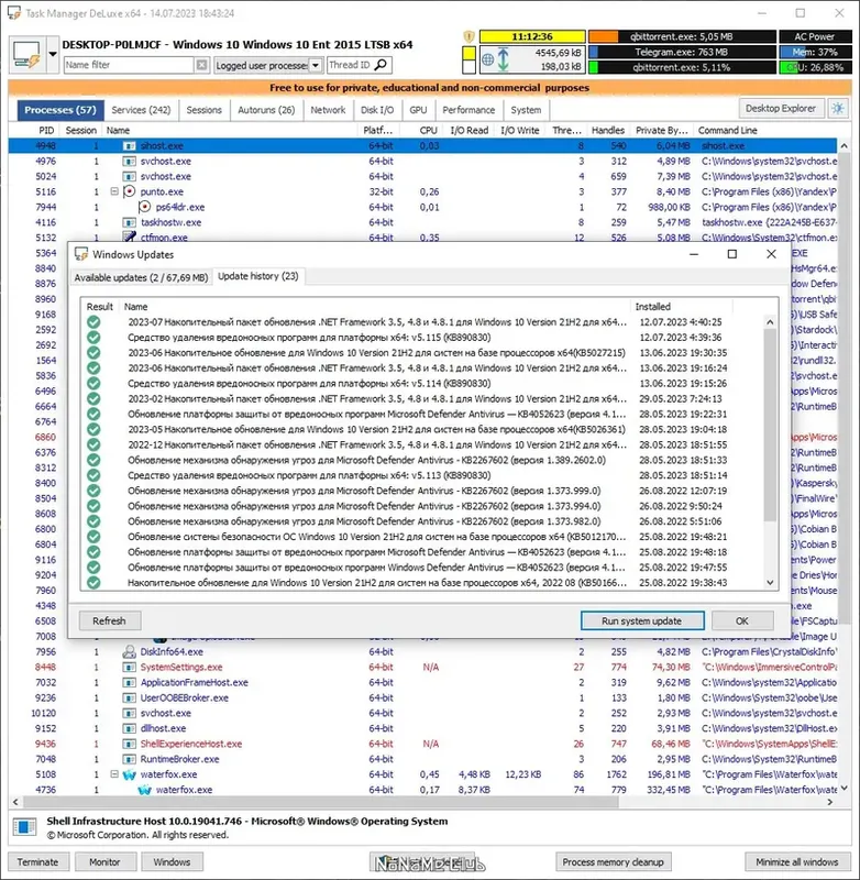 Task Manager DeLuxe — это мощная портативная утилита, предоставляющая расширенную информацию о компонентах системы и их состоянии. Она включает функции, аналогичные стандартному диспетчеру задач Windows, но с улучшенным интерфейсом, автоматическим обновлением данных и дополнительными возможностями для администрирования. Программа не требует установки, что делает её удобным инструментом для диагностики и мониторинга в любой системе без следов в системе после закрытия.