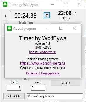 Timer — это универсальный таймер с тремя независимыми счетчиками, предназначенный для контроля интервалов и периодических действий. В программе реализована возможность отображения прошедшего или оставшегося времени, а также подсчета количества выполненных циклов тренировок или других повторяющихся задач. Удобные настройки позволяют закрепить окно поверх остальных приложений, скрывать координаты и управлять отображением часов с настраиваемым временем UTC. Встроенные функции позволяют использовать таймер как секундомер, а также управлять режимами сна, resolution и turbo для повышения эффективности работы системы.
