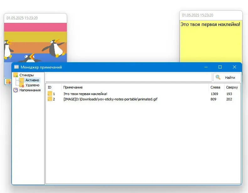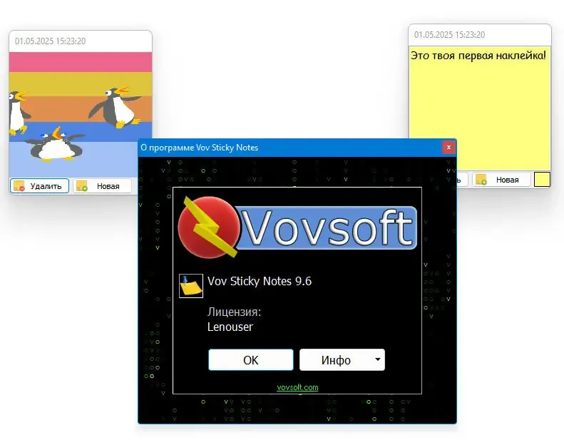 Vov Sticky Notes — это удобное приложение для создания цифровых заметок, которое помогает организовать рабочий стол и повысить продуктивность. Программа позволяет быстро добавлять напоминания, вставлять изображения и скриншоты, а также управлять важной информацией прямо на экране. Благодаря своим функциям она становится незаменимым инструментом для пользователей, предпочитающих держать важные данные под рукой в виде заметок и напоминаний.