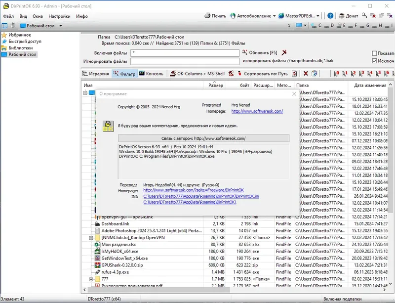 DirPrintOK — это компактное и эффективное программное обеспечение для управления печатью содержимого каталогов. Благодаря встроенной функции «Фильтр» пользователь может предварительно просматривать и выбирать определённые типы файлов или папки перед отправкой на печать. Программа поддерживает как позитивную, так и негативную фильтрацию, что позволяет точно настроить вывод и исключить ненужные файлы, включая подкаталоги. Это делает её незаменимым инструментом для тех, кто часто работает с большими объемами данных и нуждается в быстром и точном формировании печатных отчетов.