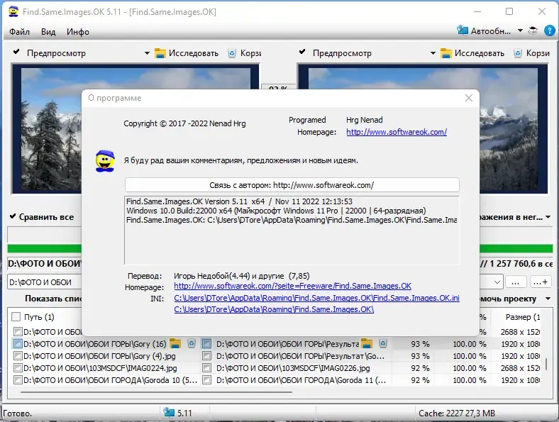 Find.Same.Images.OK — это удобное программное обеспечение для поиска одинаковых или похожих изображений на компьютере. Оно позволяет обнаружить дубли, зеркальные, повернутые или негативные изображения, что значительно упрощает управление фотоколлекциями. Этот инструмент подходит для тех, кто хочет освободить место на жестком диске или найти похожие файлы среди большого объема изображений.
