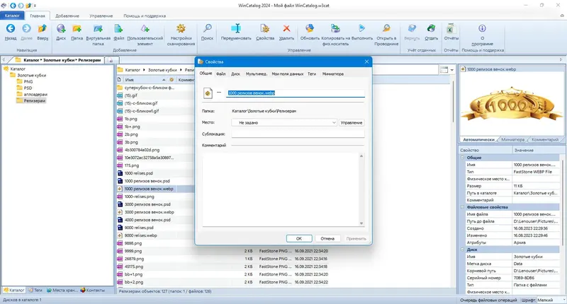 WinCatalog — это мощный каталогизатор, который помогает систематизировать все ваши диски, файлы и папки в единую базу данных. Он поддерживает работу с различными носителями информации, включая CD, DVD, USB-накопители и сетевые папки. Программа автоматически извлекает метаданные, теги и описание для мультимедийных файлов, таких как mp3, html и Zip-архивы, что значительно ускоряет поиск нужных элементов. Кроме того, WinCatalog позволяет отслеживать местонахождение ваших дисков, что предотвращает их потерю или случайный обмен с другими пользователями.