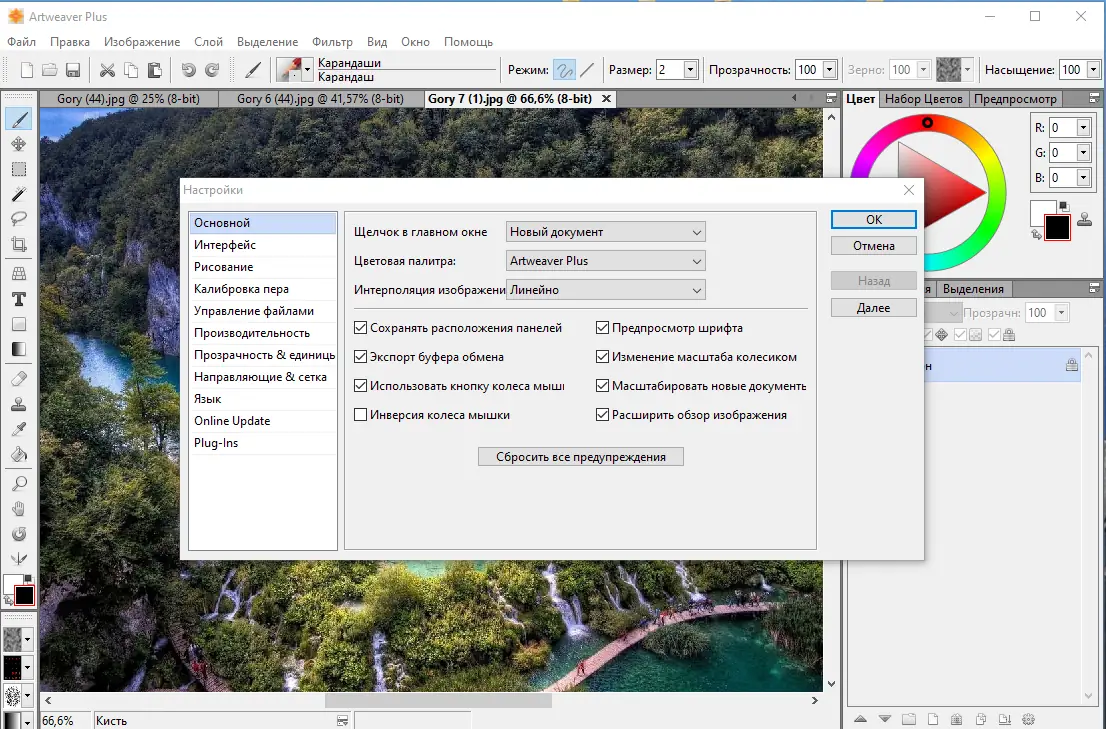 - Поддержка множества графических форматов и собственных форматов файлов.