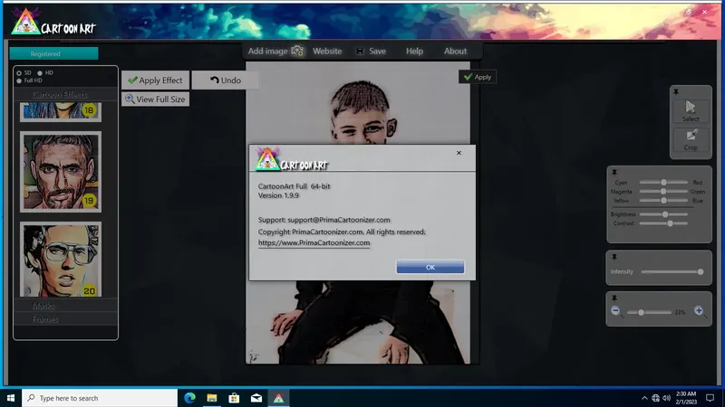 Для начала работы с CartoonArt необходимо установить программу, следуя инструкциям по установке. После этого потребуется скопировать исполняемый файл из папки crack и заменить его в корневой папке программы для активизации. После запуска программы достаточно выбрать нужный эффект из списка и применить его к выбранному изображению, используя только SD-режим для достижения наилучших результатов. В процессе обработки программа автоматически преобразует фото в мультяшный стиль, что позволяет получить профессиональный результат без специальных навыков редактирования.