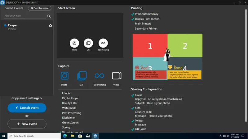 dslrBooth — это профессиональный редактор для создания фотобудок, который позволяет легко организовать фотосессию в любом месте. Благодаря совместимости с зеркальными камерами, таким как Canon и Nikon, программа обеспечивает высокое качество снимков и широкие возможности персонализации. Пользователи могут быстро настраивать макеты, выбирать фотографии для печати и делиться ими в интернете, что делает ее универсальным инструментом для мероприятий, свадеб и маркетинговых акций.
