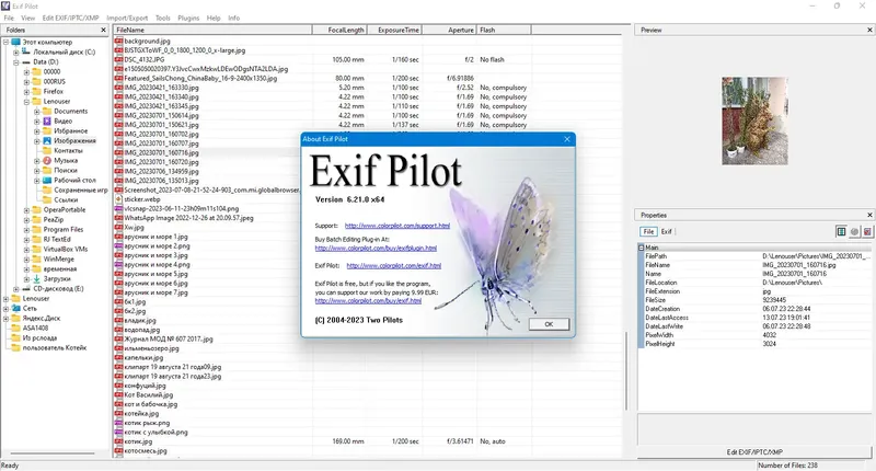 Exif Pilot — это универсальный инструмент для работы с метаданными изображений, обладающий широкими возможностями и поддержкой различных форматов. Он подходит как для профессиональных фотографов, так и для любителей, которым важно точно управлять информацией о своих фотографиях. Однако, несмотря на богатство функций, интерфейс программы может показаться сложным для новичков, а некоторые возможности доступны только в платной версии.
