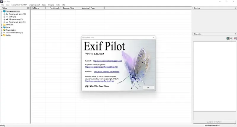 Exif Pilot — это современный редактор метаданных, предназначенный для работы с такими форматами изображений, как JPEG, TIFF, PNG, DNG, а также RAW-файлами, включая NEF, PEF, CR2, ARW и другие. Он позволяет не только просматривать существующие данные, но и вносить изменения, а также создавать новые метаданные для фотографий. Помимо этого, программа поддерживает импорт и экспорт информации в форматах XML, MS Excel и CSV, что облегчает интеграцию с другими системами и автоматизацию процессов обработки изображений. Инструмент обладает простым интерфейсом и гибкими настройками, что делает его удобным даже для новичков.