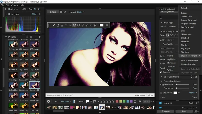 Exposure X7 — это мощный редактор фотографий, который объединяет профессиональные инструменты обработки, богатую коллекцию эффектов и интуитивно понятный интерфейс. Программа идеально подходит для тех, кто ценит фотоискусство, желает создавать уникальные изображения и экспериментировать с различными стилями. Благодаря широкому набору функций, она позволяет легко имитировать пленочные эффекты, добавлять художественные фильтры и достигать профессиональных результатов даже в домашних условиях.