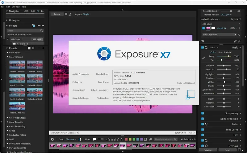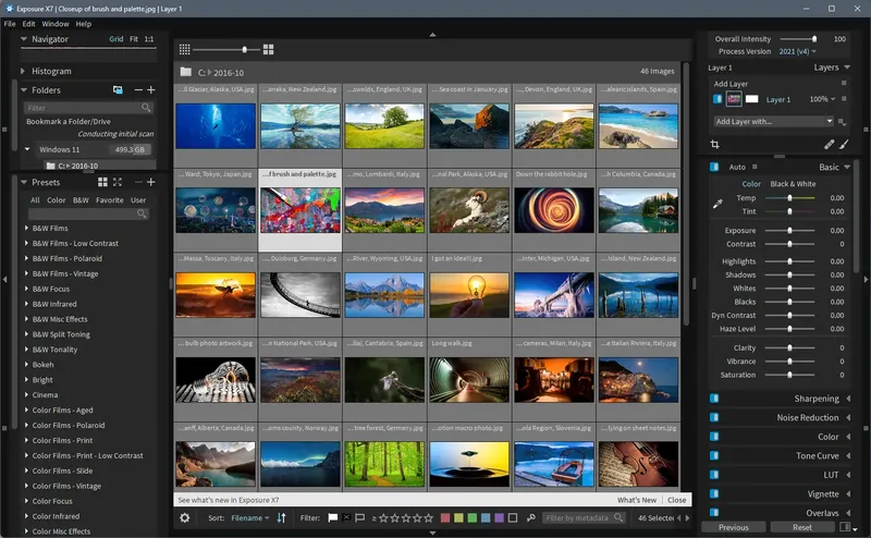 Exposure X7 представляет собой универсальный редактор графики, который отлично подходит для работы с изображениями в различных форматах. Программа обладает функциями профессиональной настройки фотографий, включая изменение экспозиции, баланс белого, контраста и насыщенности. Встроенная библиотека эффектов позволяет легко добавлять к фотографиям художественные фильтры, такие как имитация кадра из художественного кино или эффект аналоговой съемки. Благодаря поддержке форматов TIFF, JPEG, DNG, HEIC и PSD, а также RAW-файлов камер, Exposure обеспечивает высокое качество обработки изображений. Этот софт подойдет тем, кто ценит фотоискусство и хочет воссоздавать уникальные стили съемки, например, цвета Velvia или черные тона Kodachrome. Можно использовать его как автономное приложение или как плагин для фотошопа или Lightroom, что расширяет возможности работы с графикой.