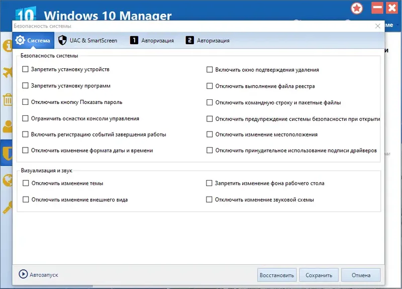 - Работа с несколькими мониторами и возможность автоматического запуска при старте Windows