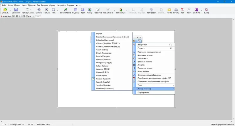 FastStone Capture — это мощное и многофункциональное программное обеспечение для снятия скриншотов с последующим редактированием и управлением изображениями. Поддержка форматов BMP, GIF, JPEG, PNG, TIFF, PDF и других делает его универсальным инструментом для работы с графикой. Встроенный редактор позволяет быстро изменять размер, поворачивать, добавлять подписи, стрелки и водяные знаки, что значительно упрощает подготовку материалов для презентаций, отчетов или публикаций. Простота использования, возможность захвата всей страницы или выделенной области, а также поддержка горячих клавиш делают работу максимально удобной и быстрой.