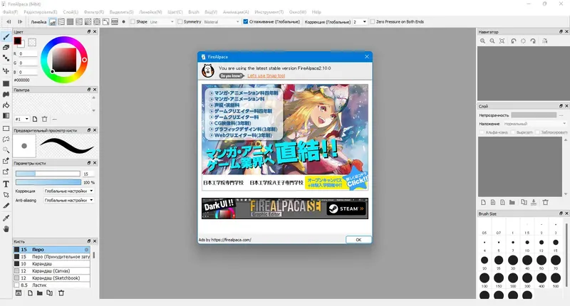 Преимущество FireAlpaca в том, что она полностью бесплатна и не требует установки, что позволяет быстро начать работу без лишних затрат.