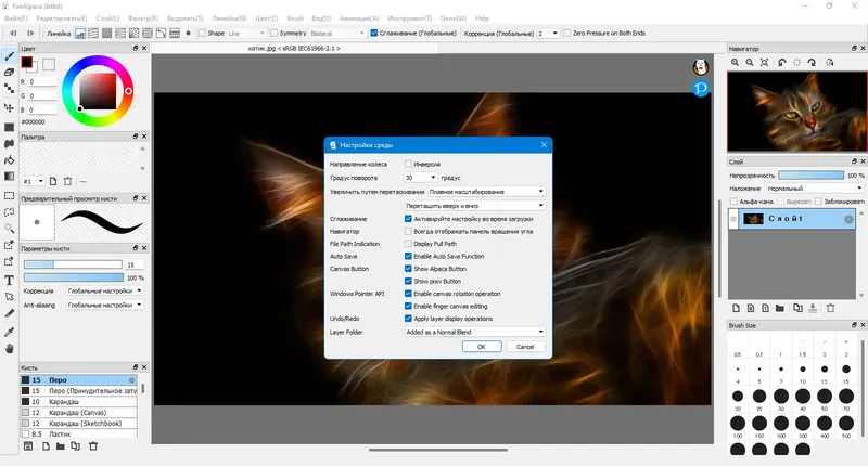 FireAlpaca — это программа для рисования и редактирования изображений, которая отличается простотой использования и широкими возможностями. В ней есть все необходимые инструменты для создания и обработки графики: кисти, заливки, перо, ластик, волшебная палочка и лассо. Встроенная поддержка слоёв, форматов .psd, .jpg, .png, .bmp, .gif и собственного формата .mdp обеспечивает гибкость работы с разными типами файлов.