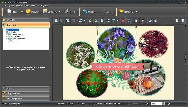 ФотоКОЛЛАЖ — это мощное и простое в использовании программное обеспечение для создания красивых и оригинальных коллажей из фотографий. Идеально подходит для оформления праздничных открыток, постеров, приглашений, обоев и веб-элементов. Благодаря богатому набору шаблонов и инструментов, программа позволяет делать привлекательные композиции всего за несколько минут, даже без опыта в графическом дизайне.