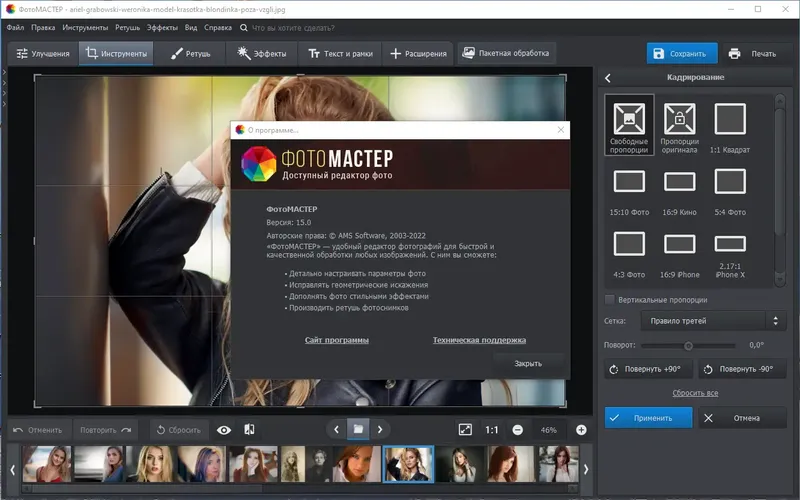 ФотоМАСТЕР — это мощный редактор фотографий, который позволяет быстро и легко улучшать изображения. Благодаря интуитивному интерфейсу и обширному набору инструментов, программа подходит как для новичков, так и для профессиональных фотографов. Скачать бесплатно и установить на русском языке можно на официальном сайте, что делает её доступной для широкой аудитории пользователей, желающих создавать качественные фотоснимки.