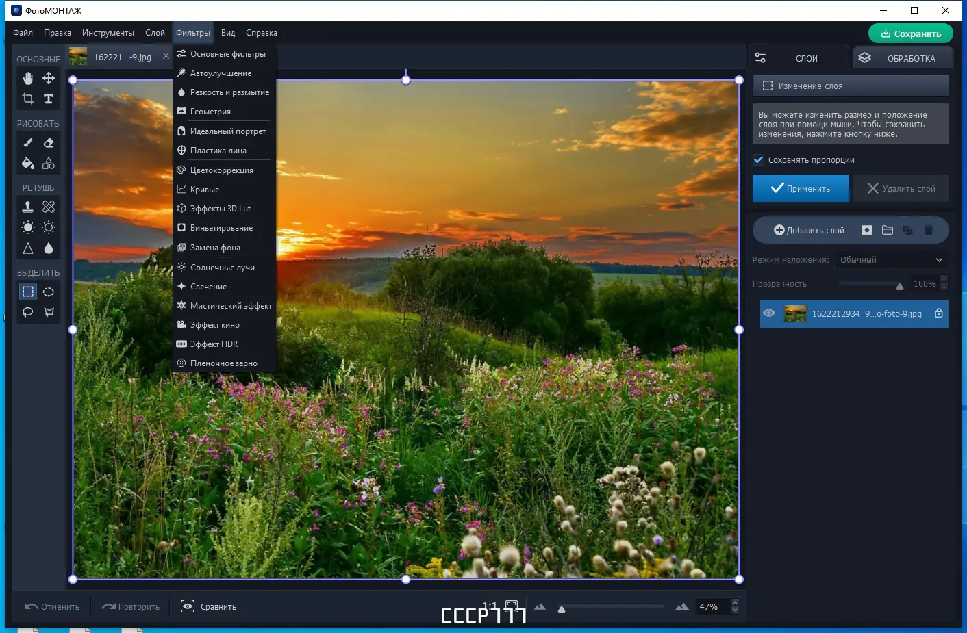 ФотоМОНТАЖ — мощный редактор фото с поддержкой слоев, который позволяет создавать профессиональные фотомонтажи, ретушировать лица и объединять изображения. Благодаря богатому набору инструментов и эффектов программа подходит как для новичков, так и для опытных фотографов. Ее можно скачать бесплатно и использовать для обработки фотографий любой сложности, создавая уникальные изображения и иллюстрации.