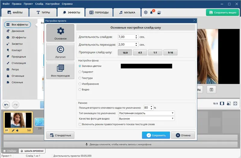- Создание слайд-шоу высокого качества с музыкой и эффектами