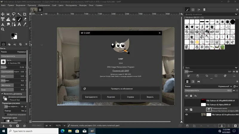 GIMP — это универсальный редактор изображений с открытым исходным кодом, который предоставляет широкий спектр функций для обработки фотографий, создания графики и анимации. Он позволяет работать со слоями, применять разнообразные эффекты и фильтры градиента, а также использовать пользовательские шаблоны. Для расширения возможностей программы доступны более сотни плагинов, что делает GIMP одним из самых гибких инструментов для редактирования изображений. Поддержка прозрачности, сценариев на Python, Scheme и Perl позволяет автоматизировать рутинные задачи и создавать сложные проекты.