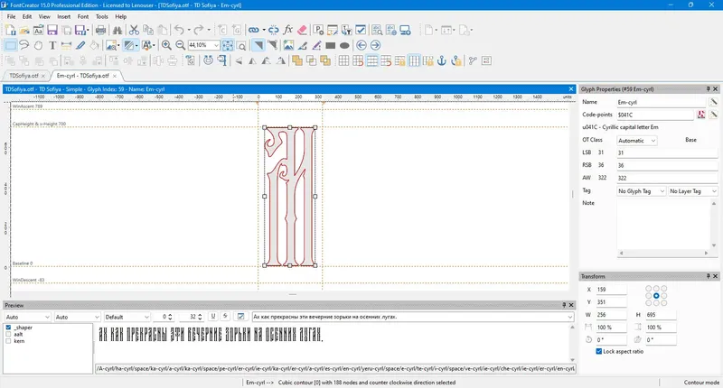 - Создание и редактирование шрифтов форматов TrueType и OpenType