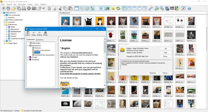 Imagine — это современный просмотрщик изображений, который позволяет быстро просматривать, редактировать и управлять графическими файлами. Он поддерживает множество популярных форматов изображений, включая PNG, JPG, GIF, BMP, TIFF, ICO, а также форматы высокого динамического диапазона HDR и EXR. Встроенные функции позволяют извлекать отдельные кадры из анимационных файлов, показывать подробную информацию о файлах, включая метаданные Exif и IPTC, а также управлять прозрачностью изображений. Благодаря поддержке цифровых RAW-файлов, программа идеально подходит для фотографов и дизайнеров, работающих с изображениями профессионального уровня. Кроме того, Imagine обладает возможностями пакетной обработки, созданию анимаций и созданию многослойных изображений, что расширяет её функционал.