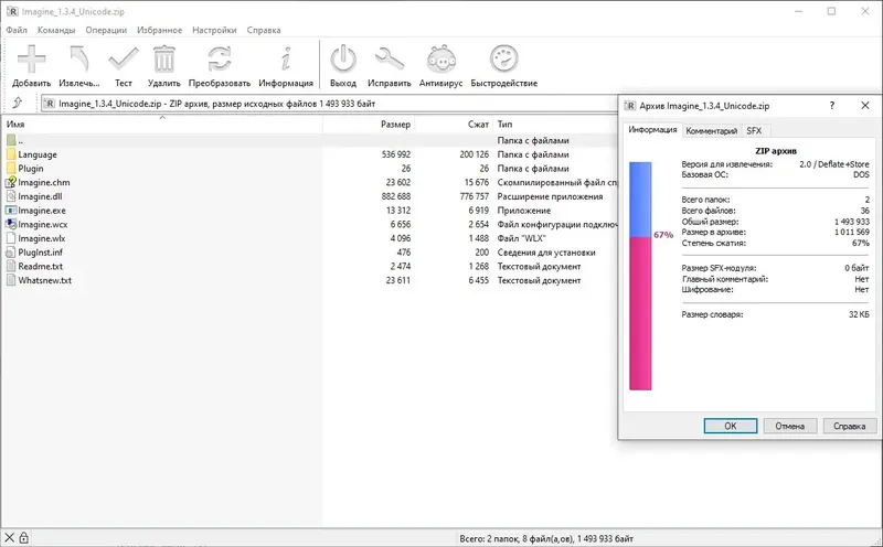 - Поддержка архивов и плагинов для расширения функциональности