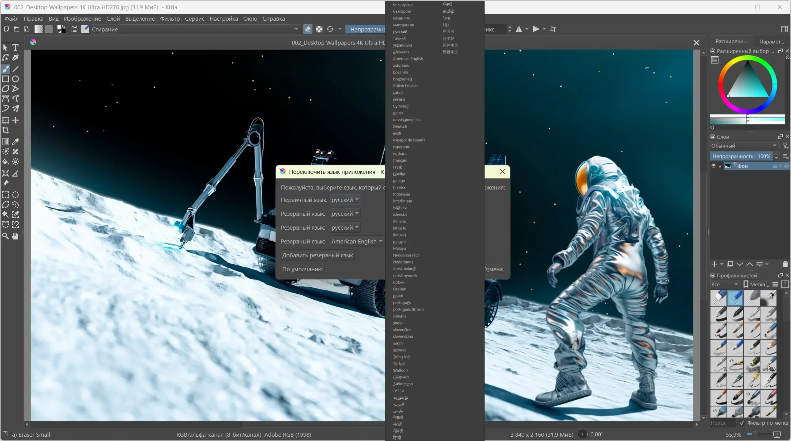Krita — это полноценный редактор для цифровой живописи, который отличается высоким качеством обработки изображений и гибкостью настроек. В программе реализована многослойная обработка, что позволяет создавать сложные композиции и работать с различными цветовыми моделями. Уникальные инструменты для рисования включают расширенный набор brushes, поддержку динамики кистей и имитацию традиционных материалов, таких как бумага и пастель. Krita также отлично подходит для создания скетчей, текстур и художественных эффектов, делая ее незаменимым инструментом для художников, иллюстраторов и аниматоров.