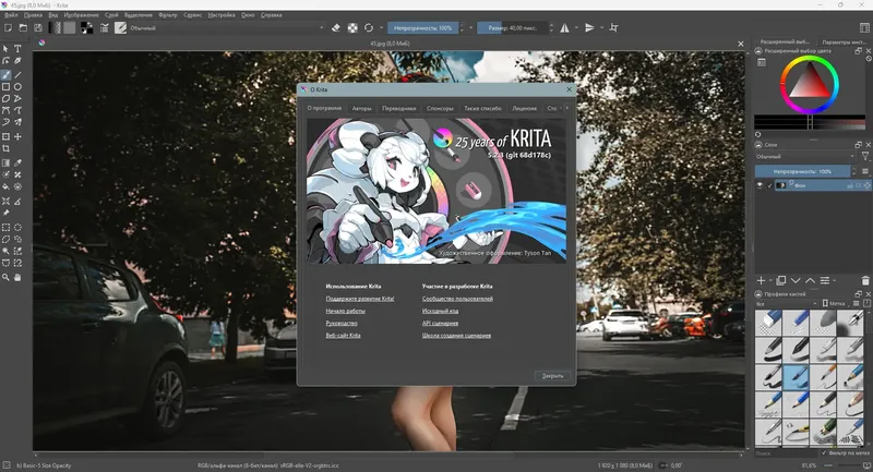 Krita — это профессиональный редактор для цифровой живописи, который можно скачать бесплатно и использовать как для любительского, так и для профессионального творчества. Эта программа для рисования славится своим богатым набором кистей, эффектов и инструментов, позволяющих создавать реалистичные текстуры и стилизации в различных жанрах. Поддержка многослойных изображений, расширенные возможности работы с цветами и формами делают Krita одной из лучших программ для художников, ищущих качественный и бесплатный редактор для ПК. В дополнение к стандартным функциям, Krita предлагает работу с файлами формата PSD, что облегчает интеграцию с другими графическими редакторами и позволяет легко редактировать проекты, созданные в Photoshop.
