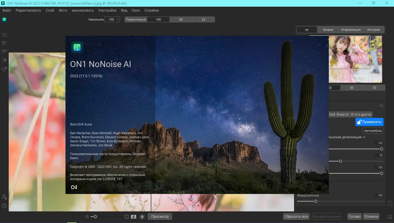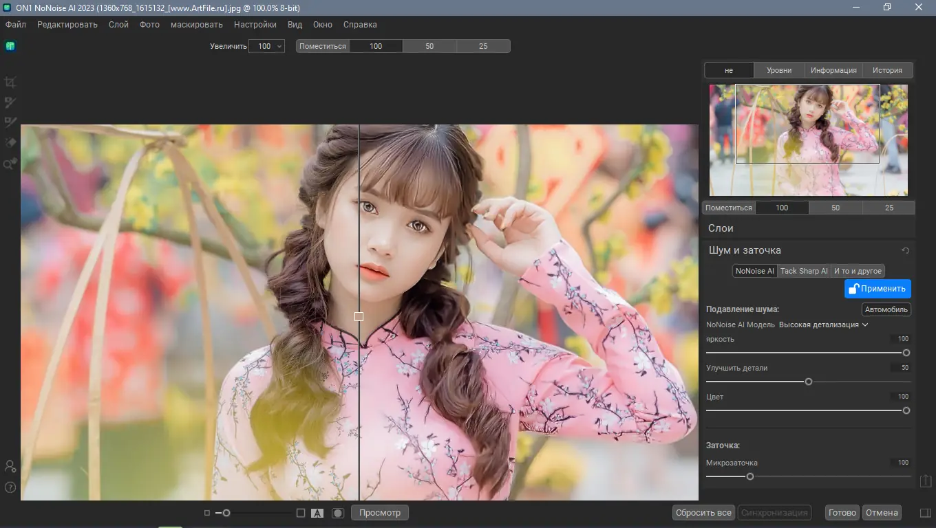 ON1 NoNoise AI 2023 — мощный редактор для удаления шума с фотографий, использующий искусственный интеллект и машинное обучение для достижения превосходных результатов. Эта программа обеспечивает эффективное устранение яркостного и цветового шума, сохраняя при этом максимальную детализацию изображений. Благодаря интеграции с популярными фоторедакторами и поддержке форматов RAW, ON1 NoNoise AI становится незаменимым инструментом для профессиональных фотографов и любителей. Скачать 2024 версию программы можно прямо на странице, чтобы улучшить качество своих снимков и ускорить рабочий процесс.
