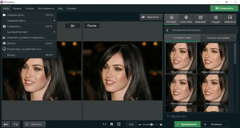 Используйте PhotoDiva для быстрого и качественного улучшения портретных фотографий.
