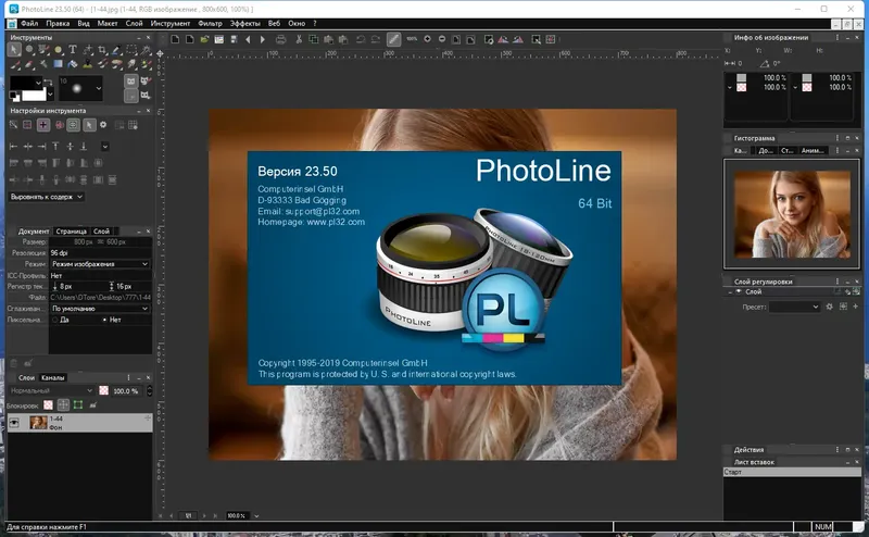 PhotoLine предоставляет расширенные функции для обработки изображений и графического дизайна, что делает его универсальным инструментом для различных творческих задач.