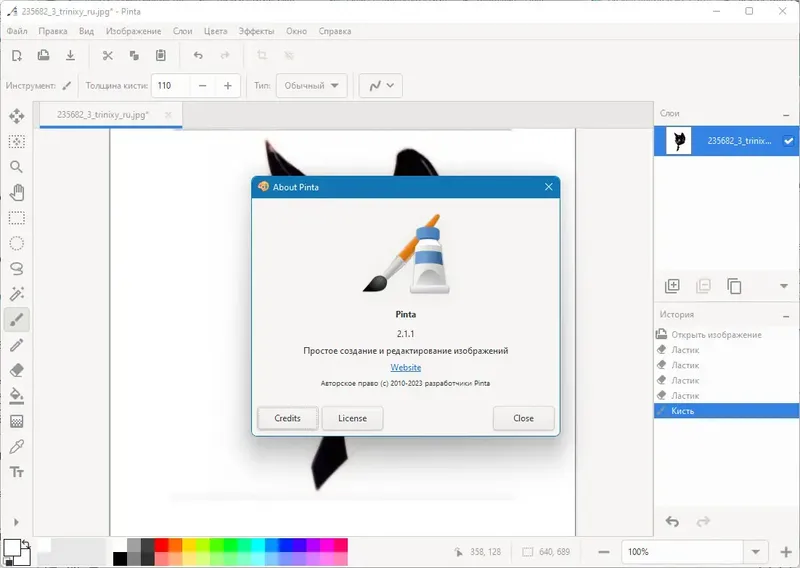 Преимущество Pinta — это баланс между простотой использования и достаточным набором функций для базового редактирования изображений.