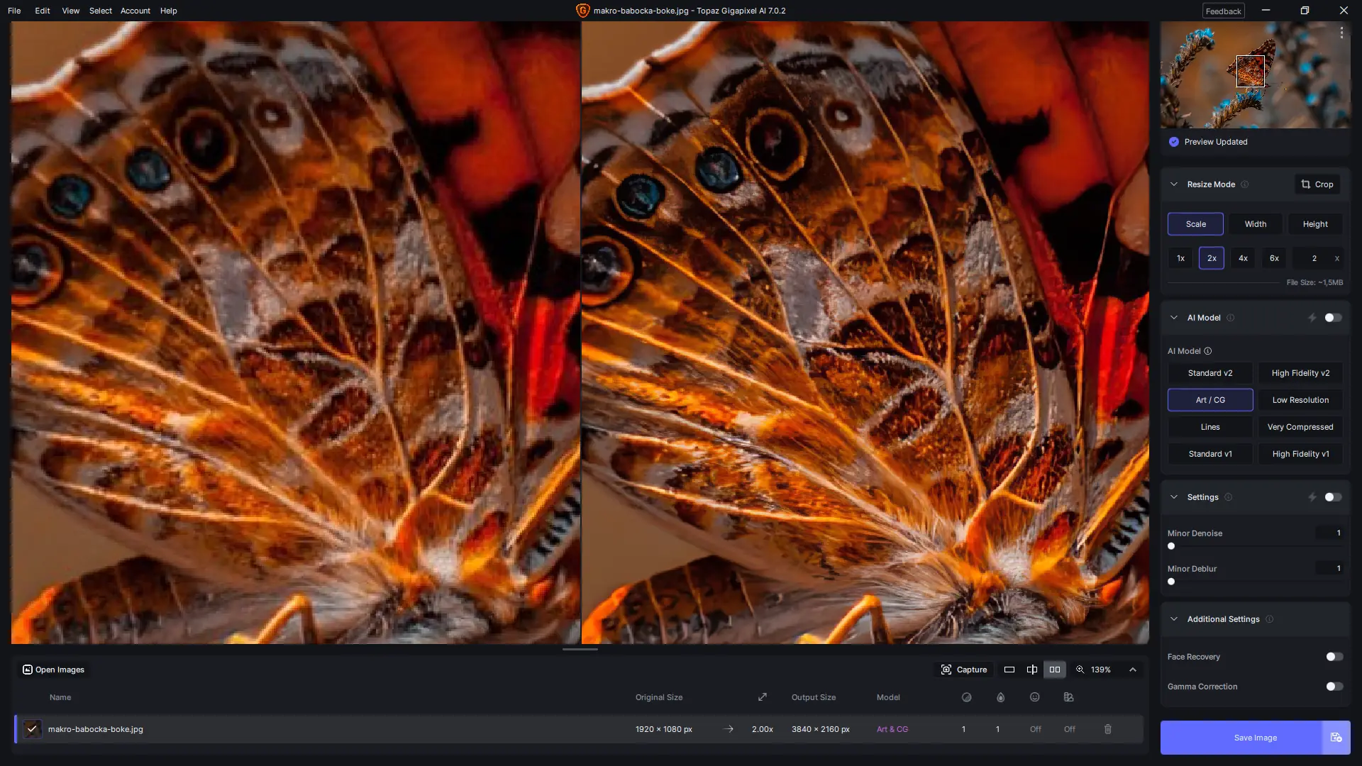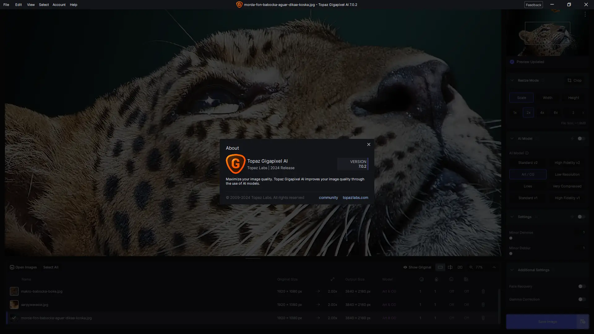 Topaz Gigapixel AI — это мощное приложение для увеличения изображений с помощью технологий искусственного интеллекта. Оно позволяет повысить разрешение фотографий и графики, сохраняя при этом естественную детализацию и текстуры. Благодаря использованию глубокого обучения, программа способна восстанавливать недостающие детали и создавать высококачественные увеличенные версии изображений, что делает её незаменимой для профессиональных фотографов, дизайнеров и любителей графики.