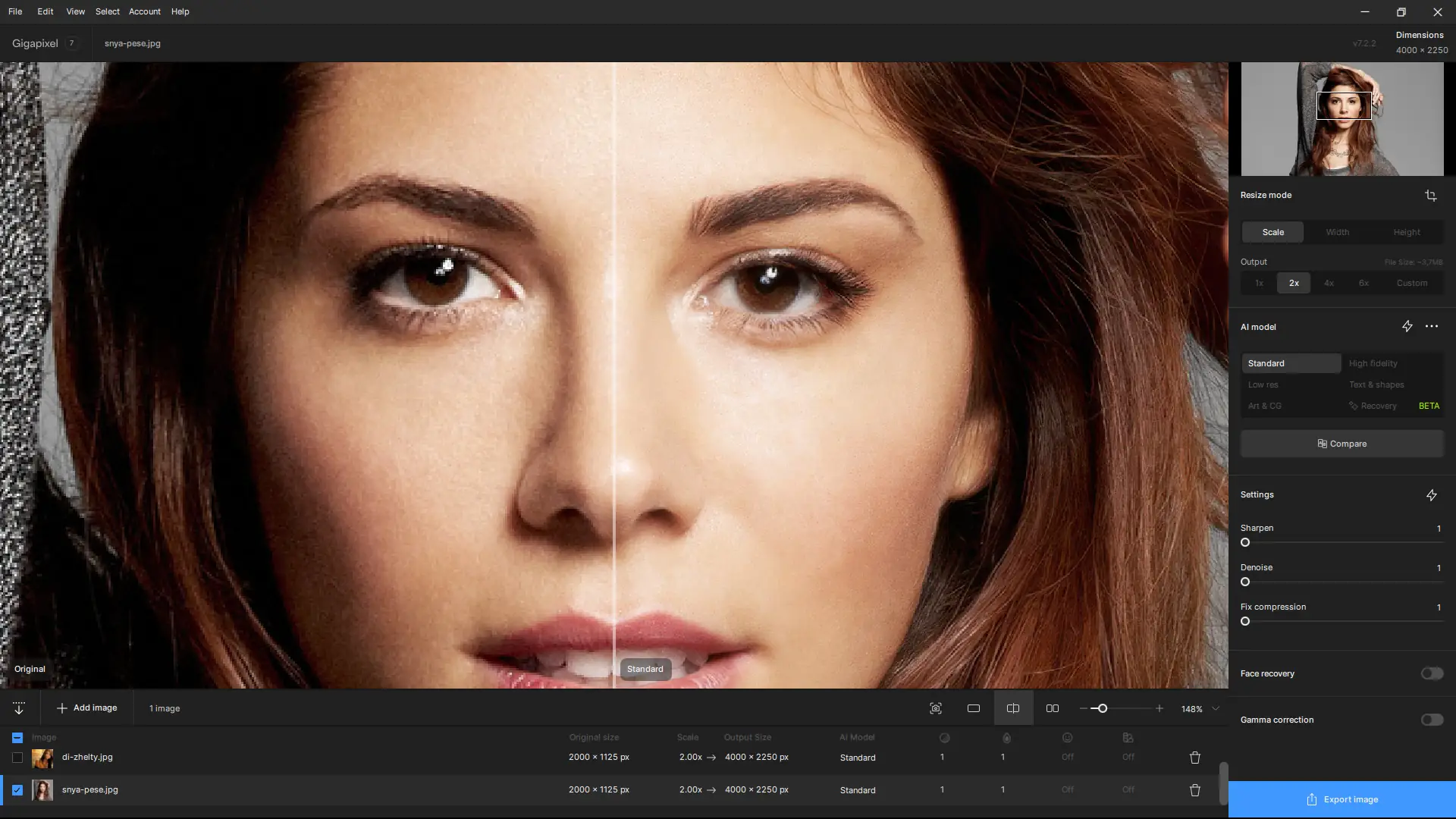 Topaz Gigapixel AI выделяется своей высокой точностью и способностью восстанавливать детали, что значительно превосходит возможности обычных методов масштабирования. Программа отлично подходит для профессионалов, требующих максимальной четкости и реалистичности изображений. Однако, несмотря на свои преимущества, она требует мощного оборудования для быстрого и эффективного функционирования, а также может быть довольно ресурсоемкой при обработке больших файлов.