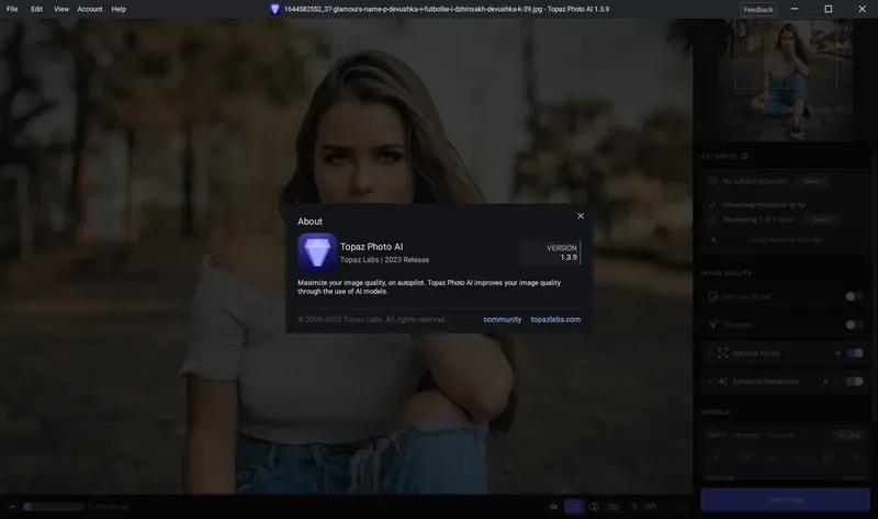 Topaz Photo AI — это универсальный редактор изображений, созданный для повышения качества фотографий с помощью современных технологий искусственного интеллекта. Он объединяет возможности известных программ Denoise AI, Sharpen AI и Gigapixel AI, что делает его одним из самых эффективных решений на рынке. Пользователи могут быстро исправлять шум, улучшать фокус и увеличивать разрешение снимков, сохраняя при этом естественность и детализацию изображений. Программа подходит как для профессиональных фотографов, так и для любителей, желающих быстро и качественно обработать свои фото.