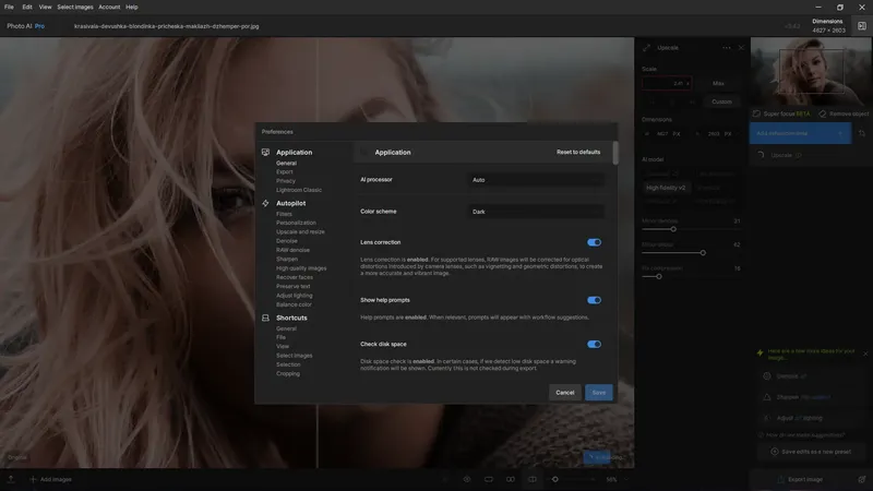 - Интеграция функций Denoise AI, Sharpen AI и Gigapixel AI в одном интерфейсе