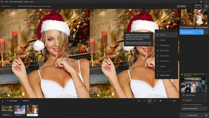 Для начала работы с программой необходимо загрузить изображение, которое требуется обработать. После этого автоматически активируется функция Autopilot, которая выявит проблемы и предложит оптимальные исправления. В автоматическом режиме программа применяет настройки, основанные на искусственном интеллекте, обеспечивая быстрое и качественное редактирование. В случае необходимости можно вручную настроить параметры шумоподавления, повышения резкости или увеличения разрешения, что дает полный контроль над результатом. После завершения обработки изображение сохраняется в выбранной папке, готовое к дальнейшему использованию или публикации.