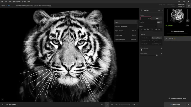 Topaz Photo AI — это универсальный редактор графики, который использует передовые алгоритмы искусственного интеллекта для улучшения фотографий. Объединив функции Denoise AI, Sharpen AI и Gigapixel AI, разработчики создали инструмент, способный автоматически выявлять и исправлять дефекты изображений. Благодаря удобному интерфейсу и автоматическому режиму Autopilot, работа с программой становится интуитивно понятной даже для новичков. Программа позволяет быстро подготовить фотографии к публикации или печати, сохраняя при этом максимальную детализацию и естественность.