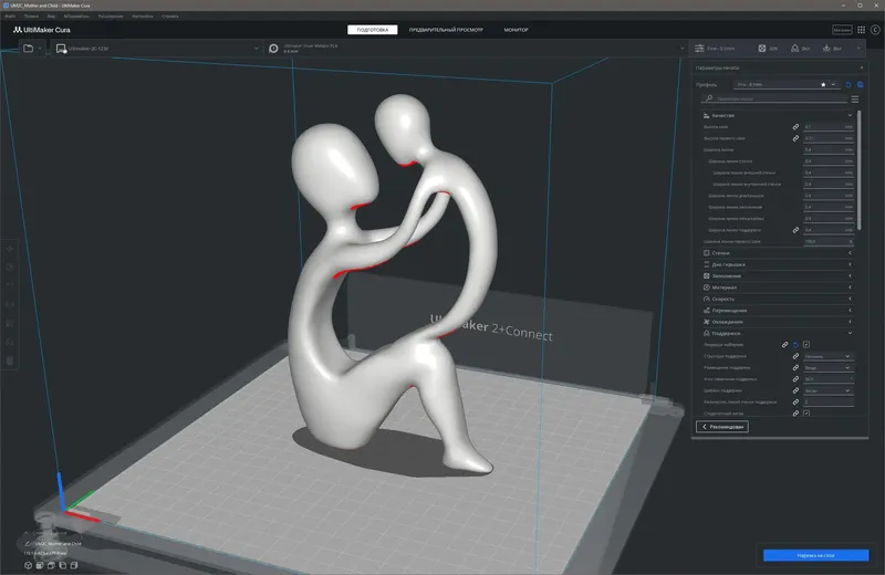 Ultimaker Cura — это мощный слайсер для 3D-печати, разработанный для повышения эффективности работы с различными моделями. Он обладает дружелюбным интерфейсом, готовыми шаблонами и расширенными настройками, что позволяет получать превосходные результаты без необходимости глубокого знания тонкостей программирования. Программа поддерживает широкий спектр 3D-принтеров и предоставляет инструменты для точной настройки параметров печати, что делает её универсальным решением для домашнего использования и небольших производственных задач.