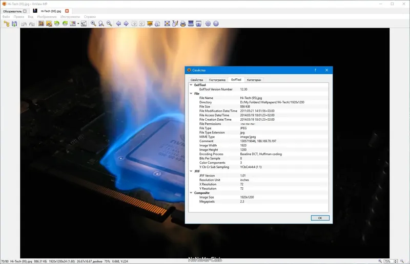 - Редактирование метаданных, таких как EXIF, и управление библиотекой изображений.