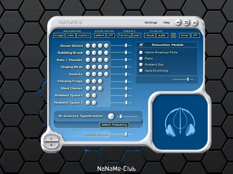 Natura Sound Therapy — это программа, предназначенная для улучшения психологического состояния и повышения уровня комфорта в повседневной жизни. Благодаря богатому выбору природных звуков и красивых видеопейзажей, она помогает избавиться от стресса, улучшить качество сна и создать атмосферу спокойствия в любой обстановке. В интерфейсе реализована возможность смешивания звуков, добавления эффектов и настройки индивидуальных сценариев, что делает программу универсальным инструментом для релаксации и медитации.