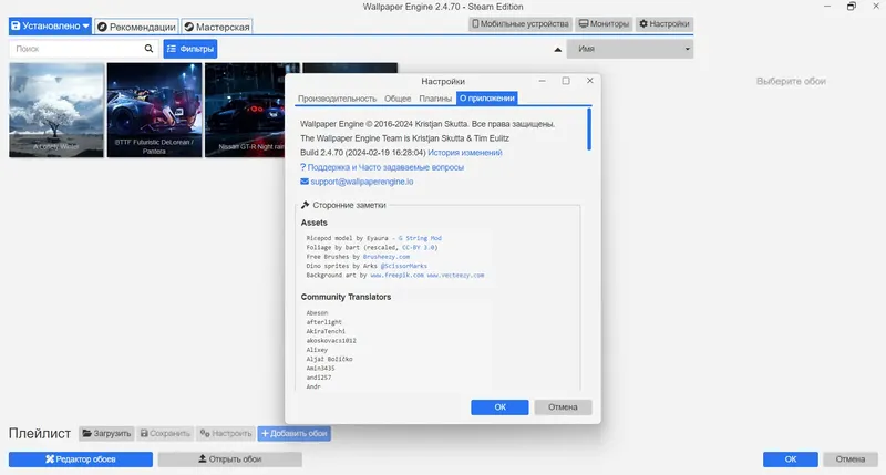 - Интеграция с Steam Workshop для быстрого обмена обоями
