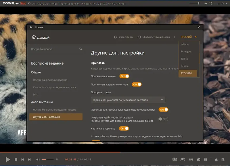 - Возможность скачивать субтитры и аннотации в форматах .srt и встроенных в видео.