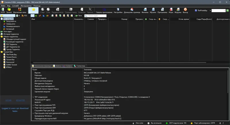 BitComet — это одна из лучших программ для скачивания торрент-файлов благодаря своей скорости и функциональности. Она подходит для пользователей, которым важна автоматизация процессов и возможность работы с разными типами соединений. Однако, несмотря на множество преимуществ, программа может быть заблокирована на некоторых системах или в сетях с установленными ограничениями. В таких случаях потребуется настроить порт или использовать порт, который не заблокирован, чтобы обеспечить полноценную работу.