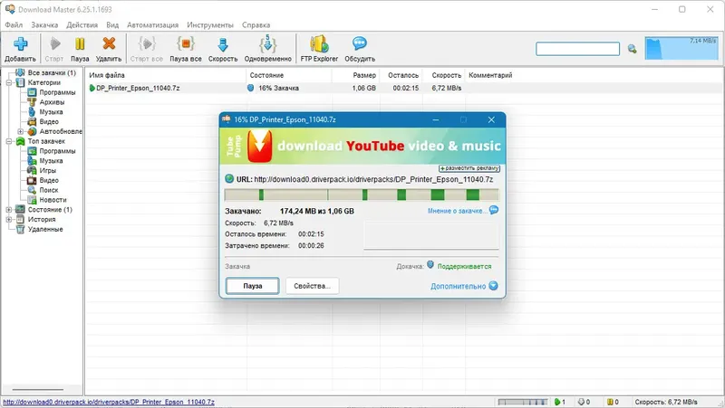 Download Master обеспечивает максимальную скорость загрузки и удобство в управлении файлами.