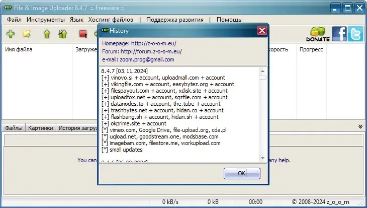 File & Image Uploader — это многофункциональное приложение, которое позволяет загружать файлы на разнообразные онлайн-сервисы без использования браузера. Программа поддерживает работу с премиум-аккаунтами, работу через прокси-серверы и параллельную загрузку нескольких файлов. Благодаря интуитивно понятному интерфейсу и богатому функционалу, она подходит как для профессиональных пользователей, так и для тех, кто ищет простое решение для обмена файлами. Современные возможности и регулярные обновления делают ее одним из лучших инструментов в категории «Разное» в разделе Интернет.
