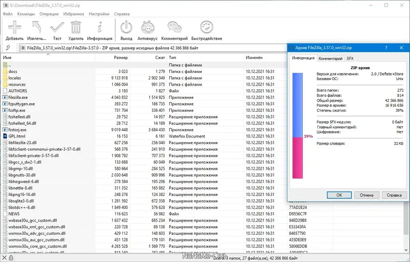 - Удобный интерфейс с двумя панелями для быстрого управления файлами