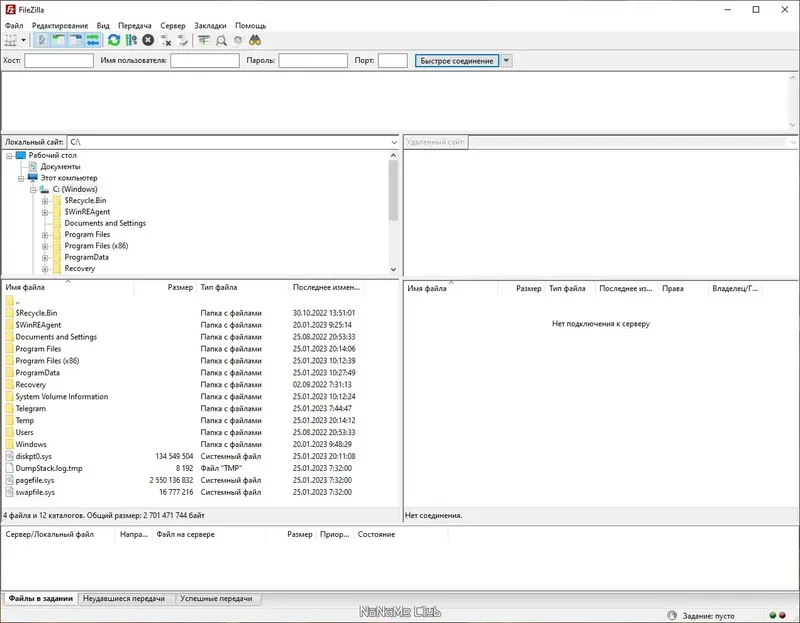 FileZilla подходит для работы как с небольшими файлами, так и с крупными объемами данных, что делает её универсальным инструментом для обмена файлами на FTP server.