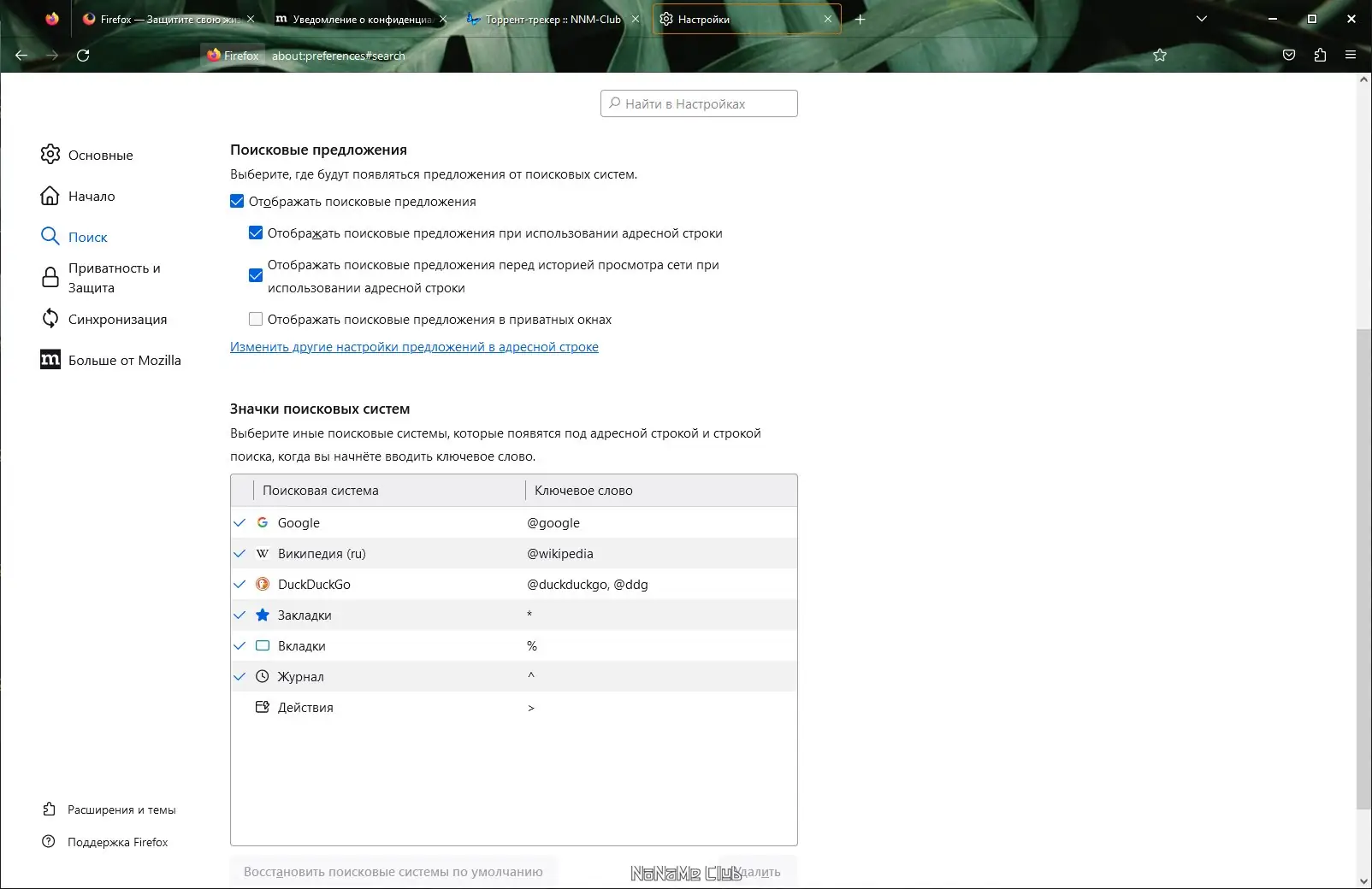 - Широкие возможности по настройке интерфейса и поведения браузера