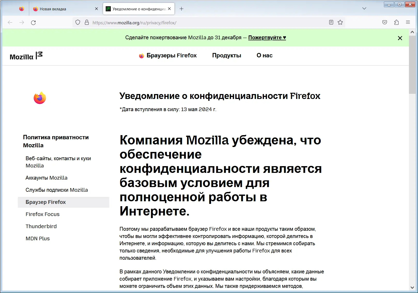 Mozilla Firefox — это современный и быстрый браузер, разработанный компанией Mozilla, который обеспечивает высокую производительность и безопасность при серфинге в интернете. Он обладает богатым набором функций, расширяемостью и простым интерфейсом, что делает его популярным выбором для пользователей Windows и других платформ. В этом браузере реализованы инструменты для повышения конфиденциальности, удобное управление вкладками и автоматические обновления, что гарантирует актуальность и безопасность работы.