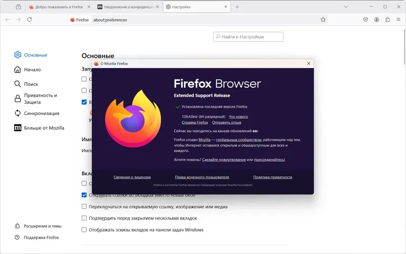 Для начала работы с Firefox Browser ESR достаточно скачать и установить программу на устройство. После запуска пользователь сможет настроить внешний вид, выбрать необходимые расширения и задать параметры конфиденциальности. Встроенные инструменты позволяют добавлять закладки, управлять паролями и использовать панель поиска для быстрого доступа к нужным ресурсам. Регулярные автоматические обновления обеспечивают работу браузера в актуальном и безопасном режиме, а удобный интерфейс позволяет освоить программу за короткое время.
